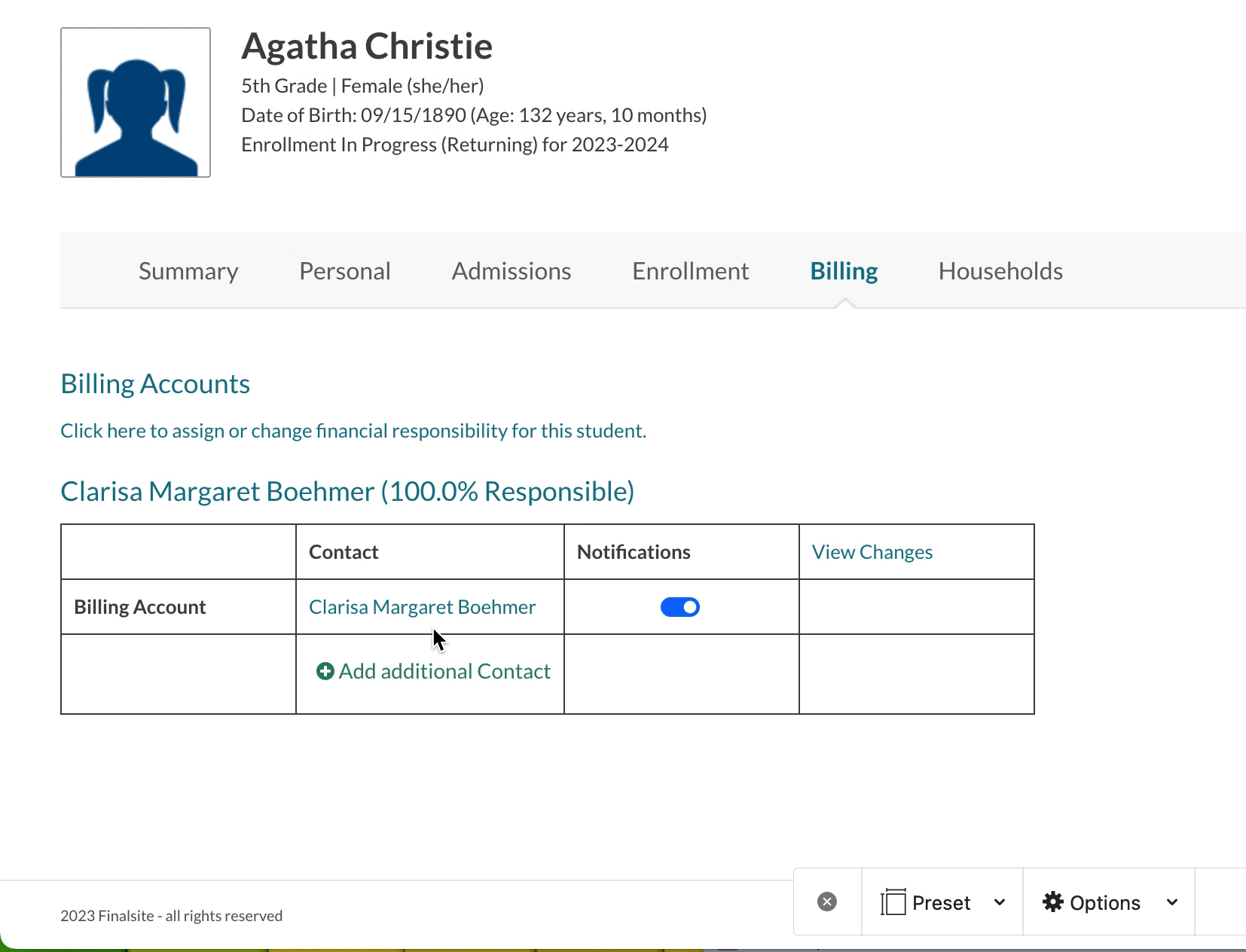 - If notifications are on, the contact will receive all billing communications.