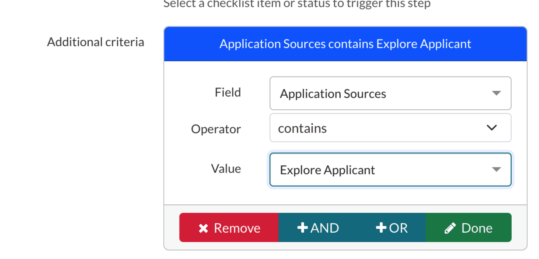 - Those with access to create Automated Communication Plans (schools that have Pro accounts) can use the Application Sources field to create a criteria that ensures the email is sent to families applying through Finalsite Explore(example below).