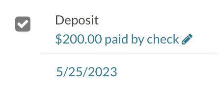 The checklist item will now be marked complete, and the payment amount, payment method, and date will be displayed.