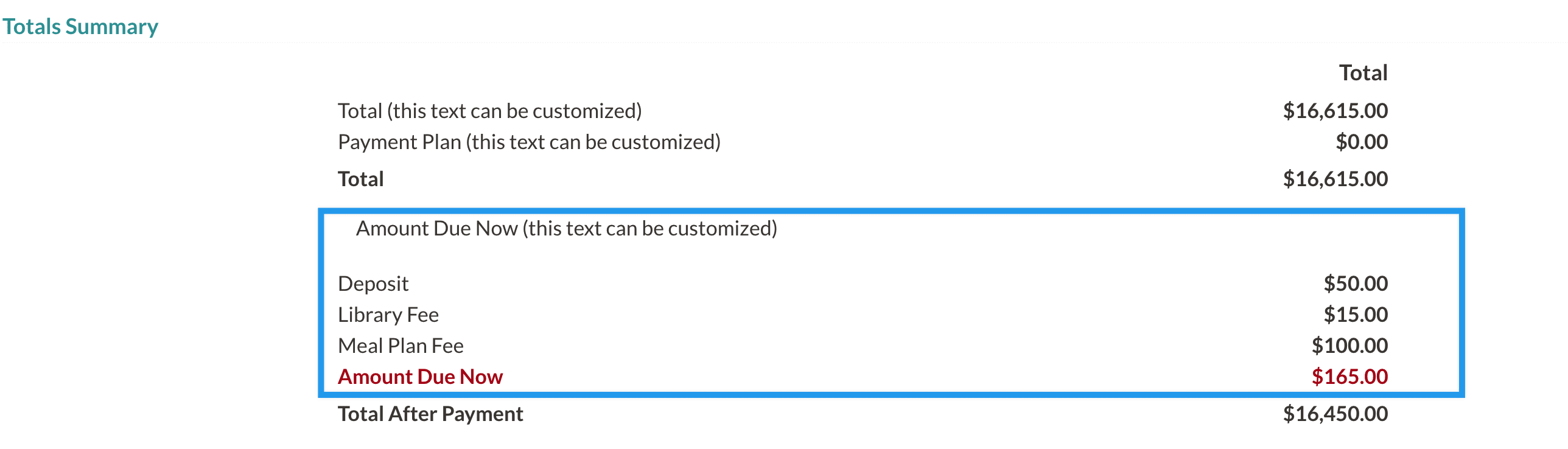 - Total Amount Due. Editable in the Advanced Editor. Type = Tuition & Fees.