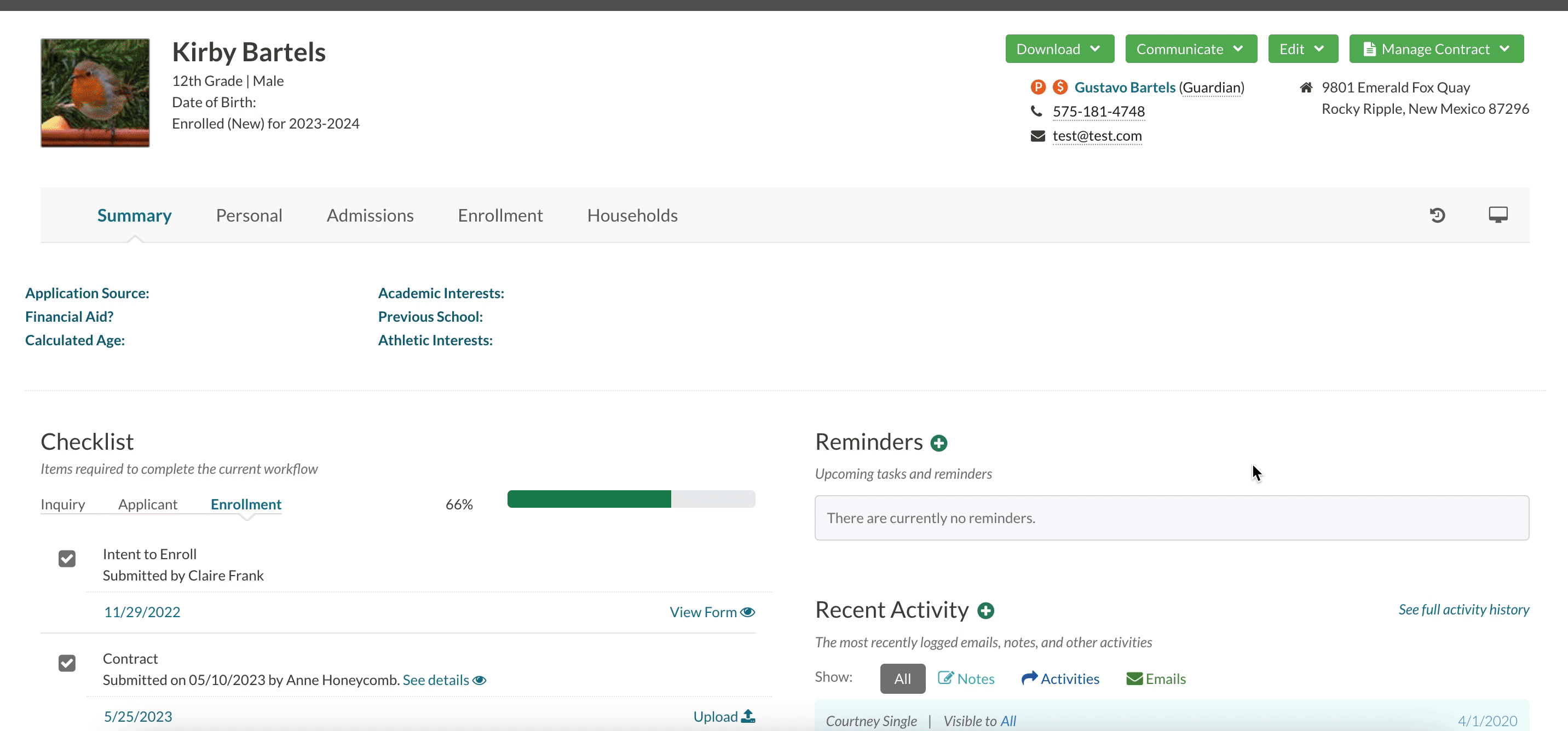 - Click on 'Manage Contract' -- 'Regenerate Contract' from the menu on the top right side of the student record.