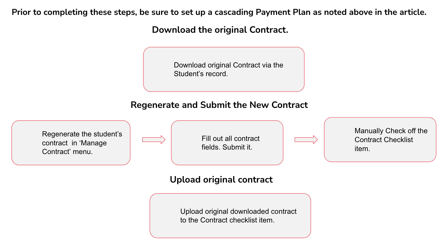 - Next, regenerate the contract from the edit menu of the student's record. Click here to learn how and view the section titled, 'How-To: Regenerate Contracts.'